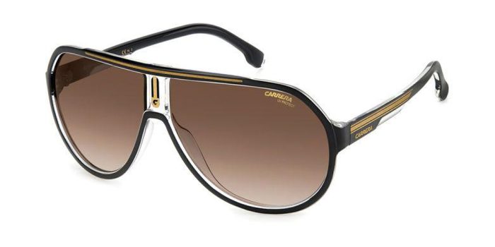 Las Carrera 1057/S 2M2 HA representan el equilibrio perfecto entre diseño deportivo, estilo retro y acabados premium. Su forma aviador envolvente, combinada con la estructura en negro con detalles dorados, ofrece un look potente, clásico y moderno a la vez.