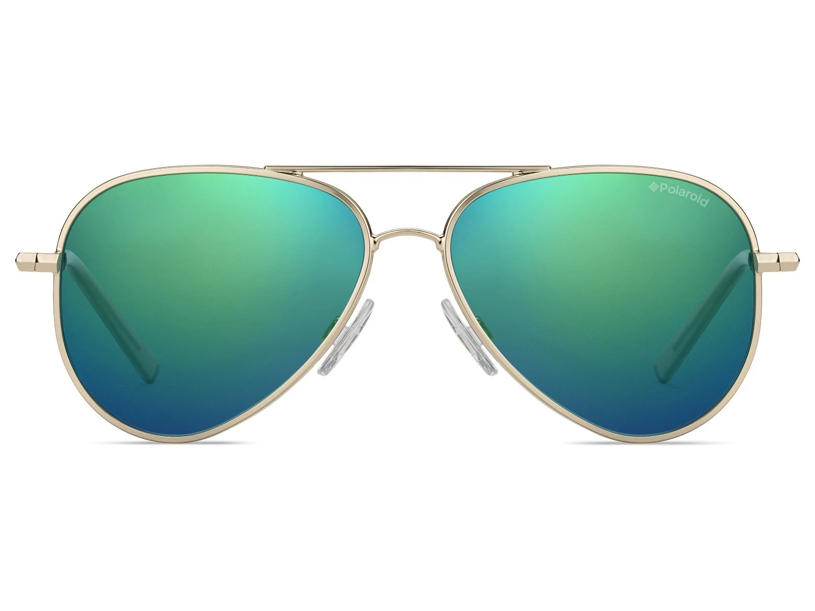 La montura en color oro brillante aporta un toque elegante y moderno, mientras que las lentes espejadas en azul verdoso (efecto espejo) no solo son visualmente llamativas, sino que también protegen los ojos de los más pequeños frente a la radiación solar con tecnología polarizada.